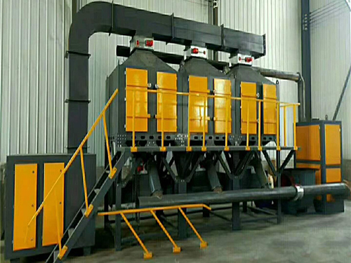 根據(jù)吸附和催化燃燒兩個(gè)基本原理設(shè)計(jì),采用雙氣路連續(xù)工作,一個(gè)催化燃燒室,兩個(gè)吸附床交替使用。先將廢氣用活性炭吸附,當(dāng)快達(dá)到飽和時(shí)停止吸附,然后用熱氣流將從活性炭上脫附下來使活性炭再次利用;脫附下來的已被濃縮并送往催化燃燒室催化燃燒成二氧化碳及水蒸氣排出。當(dāng)廢氣的濃度達(dá)到程度以后,廢氣再催化床可維持自然,不用外加熱。燃燒后的尾氣一部分排入大氣,大部分被送往吸附床,用于活性炭再次利用。這樣可滿足燃燒和吸附所需的熱能,達(dá)到節(jié)能的目的。再次利用后的可進(jìn)入下次吸附;在脫附是,凈化操作可用另一個(gè)吸附床進(jìn)行,既適合于連續(xù)操作。也適合于間斷操作。